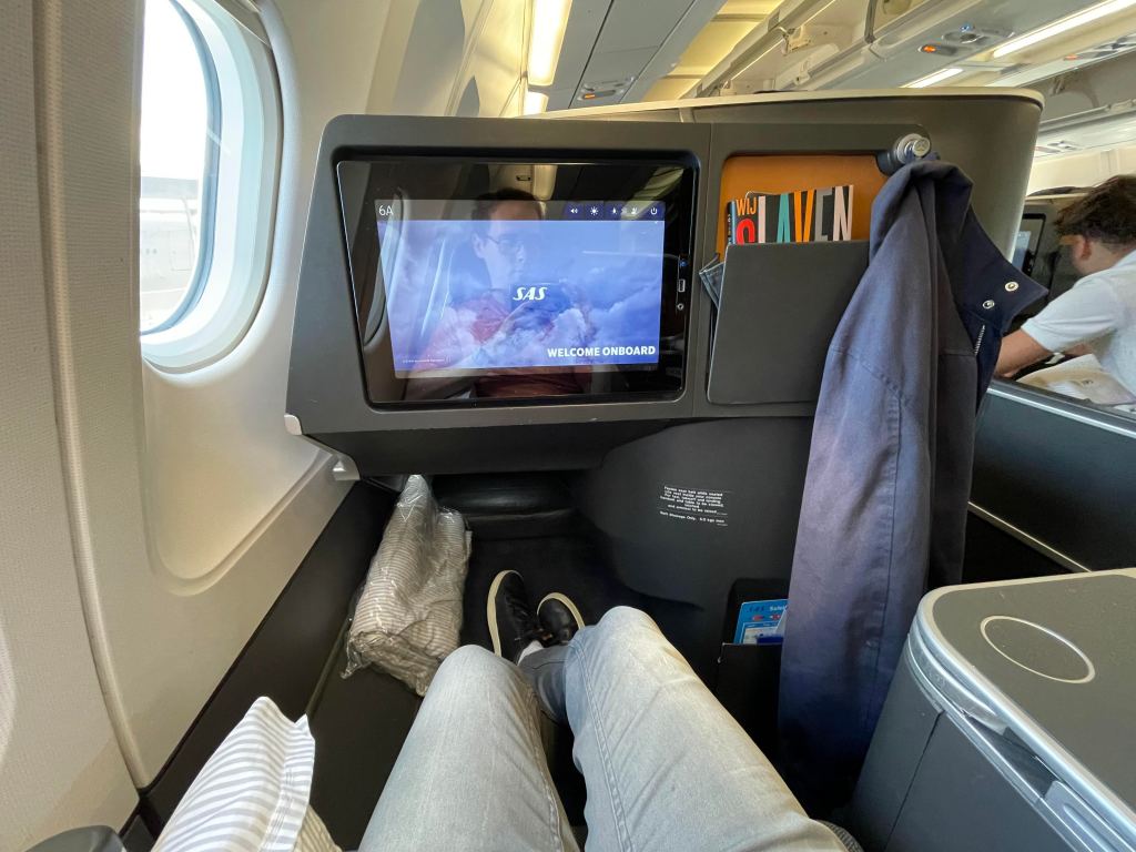 The seat is a Thompson Vantage XL seat, customized for SAS. This seat faces forward, with the seat bring a ‘true’ window seat in even numbered rows, while being removed further away from the window in uneven numbered rows. In that case, the console will be next to the window and the seat will be closer to the aisle. In the middle the seats alternate by being adjacent or further apart, and the former would be preferred for a couple traveling together. Now, SAS actually makes you pay for your seat in business class, but 48 hours before departure you can select a seat for free. Initially I was assigned to row 5, but when I checked back later, 6A had opened up on the flight to Copenhagen, and on the flight back seat 2A. Note that if you have no preference for a window seat, it shouldn’t matter what row you’re in.