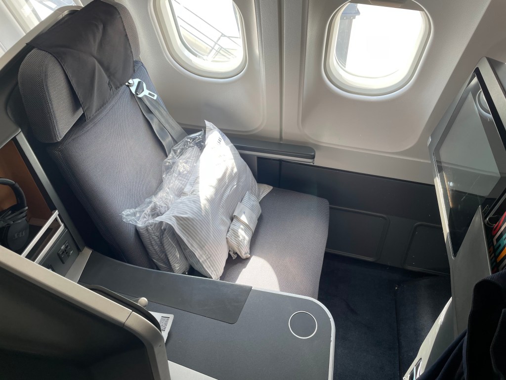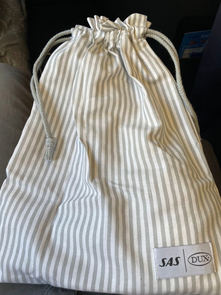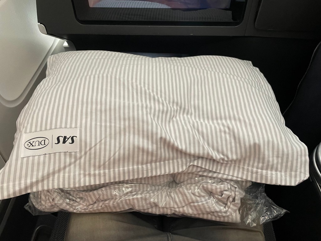 Presented on the seat was the bedding, by Dux in partnership with SAS. The pillow felt a little flimsy unfortunately, though the blanket was nice, definitely thicker and more cozy then what you’d get in premium economy or economy. There was no mattress pad.