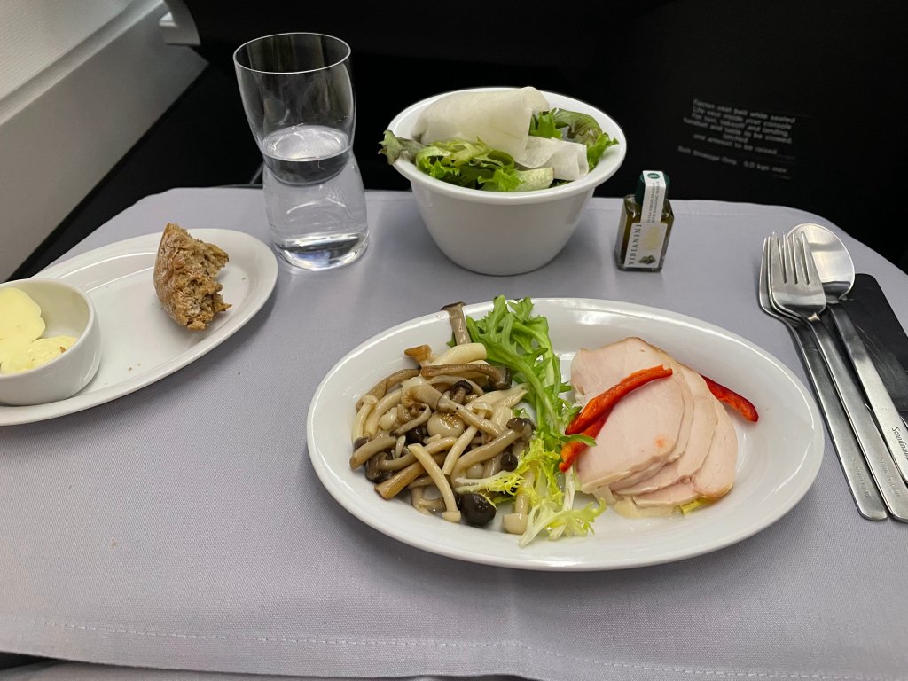 For the appetizer I selected smoked turkey breast with sauteed mushrooms on the way to CPH, which was quite tasty, though it was cold – heated it would probably have been better. On the way back I selected the scallops, which again was cold and would have been much better if heated, but nevertheless it was quite tasty. Both were served with a side salad.