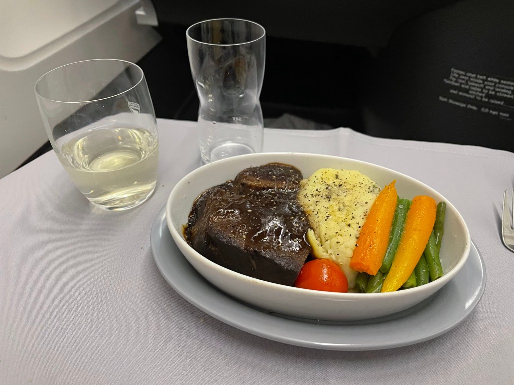 For the main dish, I had selected the ‘Yankee pot roast’. Here the flight attendants addressed me by name and confirmed my preorder choice, and added that SAS appreciated that I’d did as it helps prevent food waste, plus she said that the pot roast does tend to run out first, so it’s good I ordered it. I she to say, it was very good. The beef was very tender and full of flavor. The vegetables were a little forgettable but tasted fine nonetheless. On the return flight I selected something rather similar, namely what was described as ‘smoked beef burnt ends’, which was also very good. Again the vegetables were a little bit dead, but fine regardless. I did prefer the mashed potatoes of the outbound flight, rather then the fried potato rosti on the return flight.