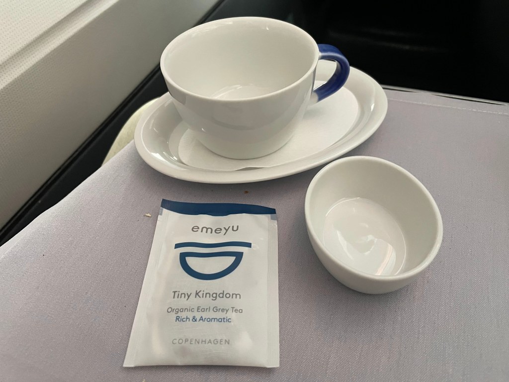 Finally, when this was cleared, there was a choice of tea or coffee. I was offered a selection of teas to choose from, but then no hot water came. The particular flight attendant that served me was a little bit forgetful, was my impression. She seemed a little chaotic up to this point and so I wasn’t too surprised that the hot water never followed. When she finally came by with a thermos I made the mistake to immediately reach out for it, only to find out that she poured me.. coffee. So I drank it dutifully and then later had some hot water for my tea.