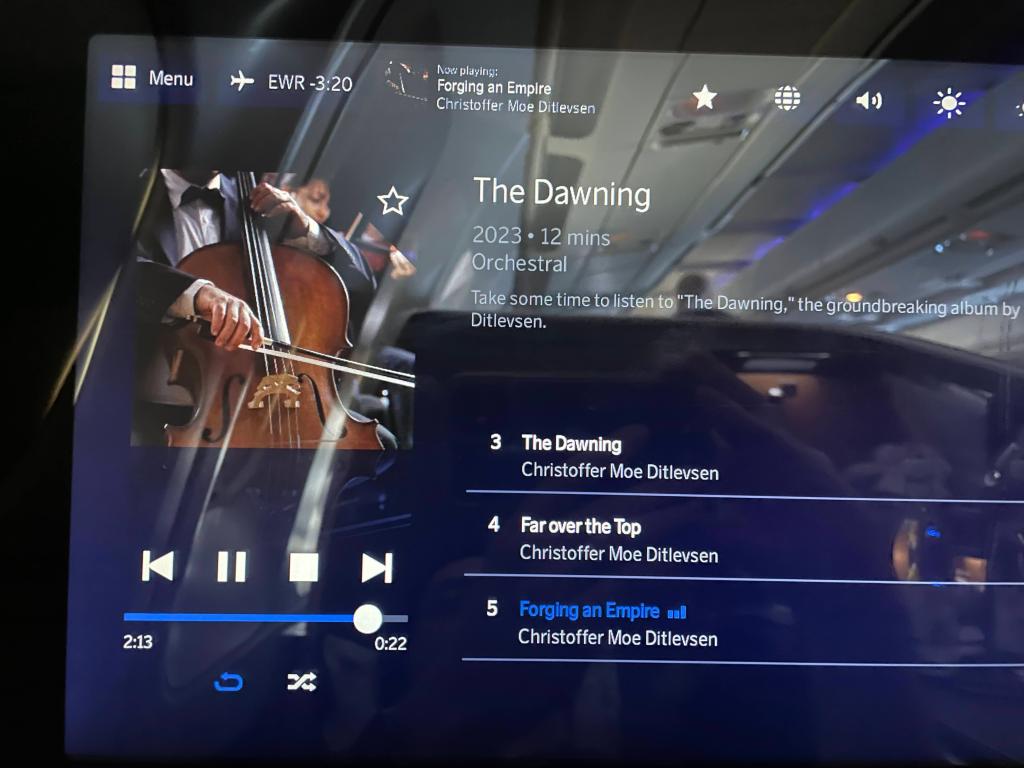 At this point remaining items from meal service were cleared, and I decided to work a bit. The tray table is more than big enough to fit my 16″ work laptop. After extending the tray table, it can be pulled towards you so you don’t have to sit hunched forward, making for a rather comfy work setup. Afterwards I watched some movies. I wouldn’t say that SAS’ entertainment library is extensive. There’s more than enough available, though perhaps not filled with the latest releases. It was nice however that there was a mix of things, including shows and movies from Apple TV+, which surprised me: I assumed these would remain entirely exclusive to that platform. Otherwise, there were some games one could play, a very small selection of music, as well as the regular moving map feature. There were also outside cameras, one for the front of the plane and one oriented downwards, but this one did not appear to show any kind of live feed. As for the headphones, they were perfectly adequate. The noise canceling function was effective, though I didn’t find them that comfortable. They were a little stiff and tight around my head, which ultimately became a little uncomfortable.