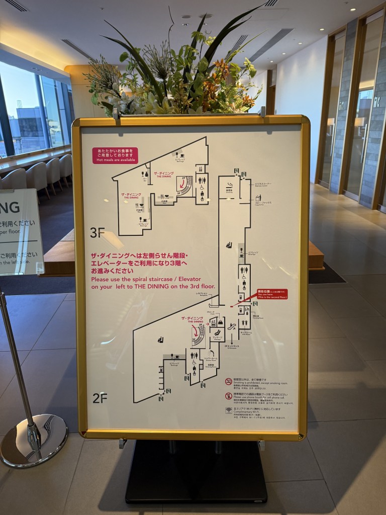 I’ve frequently heard that the JAL lounge is not that good, so I managed my expectations. Among other things, the food was supposed to be a little basic, with limited options. The truth is that, at least at Narita Terminal 2, I found the lounge to be a very nice space with decent food. As you come down the escalator you’re greeted by a long hallway-esque space, but a map suggests this is only one part of the lounge.