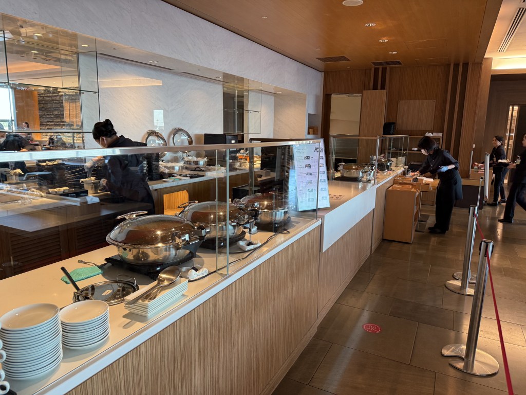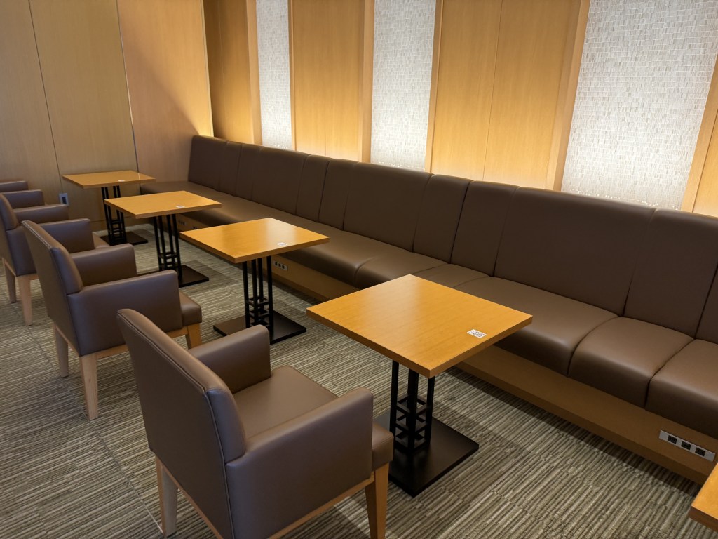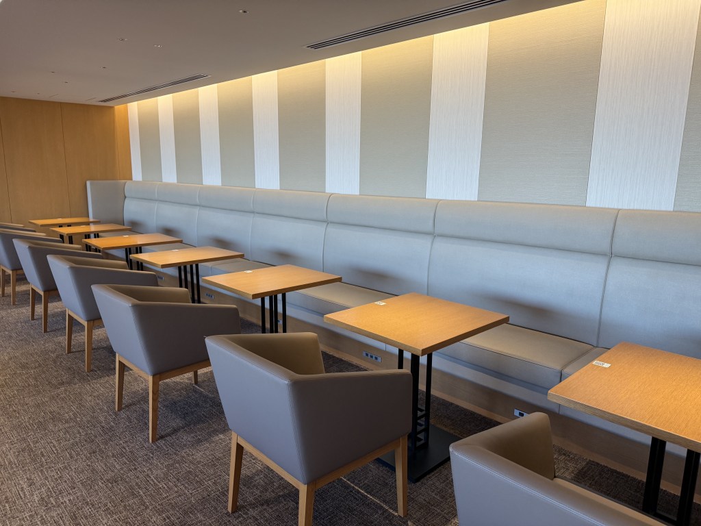The dining area has one more space, past a divider that is called ‘The Dining’. I thought this was a little confusing actually, since I just assumed that the space I was in was of that, but this suggested that wasn’t the case. Regardless, here you find a lot more seating as well as another serving station. To use this you’ll need to scan QR codes to order food by a mobile app. These QR codes are actually plastered throughout the lounge’s seating areas, but it seems you can only order food from this very specific space, and JAL does not intend for you to take any of the food to a different space.
