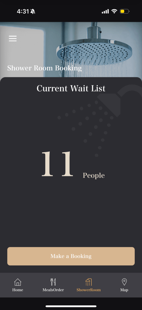 I briefly went into the shower space just to see how many showers there were. I counted about 6 or 7 dedicated stalls, though I didn’t go into any of them as they all seemed occupied. These showers can be arranged by talking with the friendly attendant, or you can scan a QR code to access a dedicated app, from which you can order food and also book a shower. When I tried this out, I saw there was a line of 11 people.