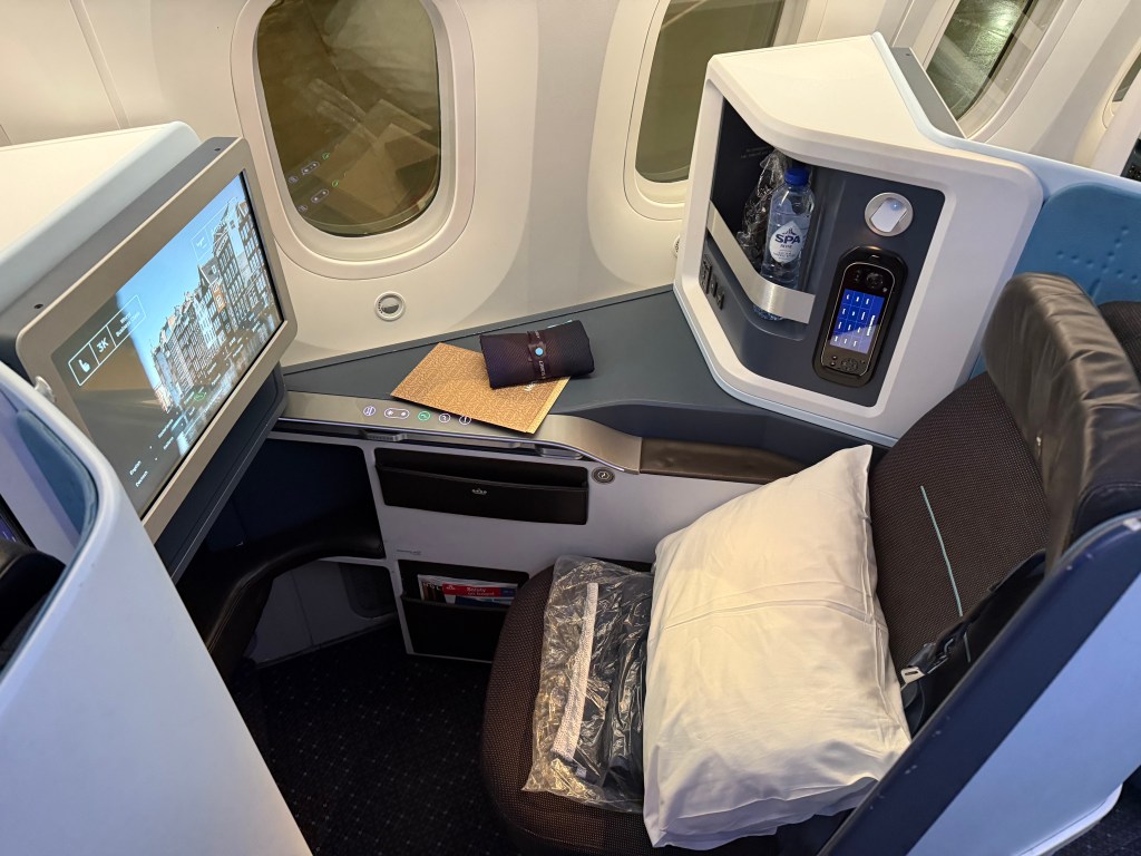 - KLM World Business Class seat is practical and comfortable