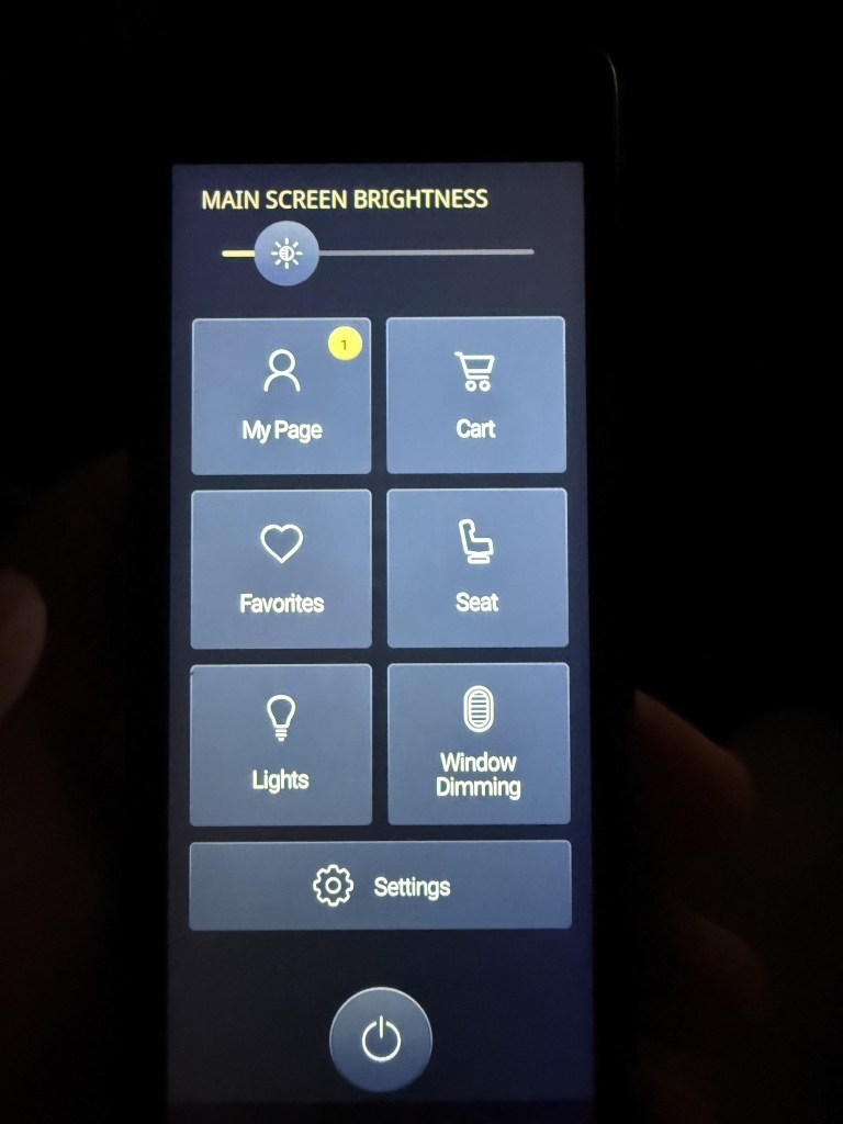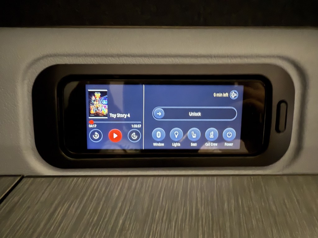 After settling in, I was first greeted by the chief flight attendant. Regrettably I don’t remember her name, but she came by to introduce herself and to introduce the seat’s functions. The truth is that she sort of rushed through it, so while well-intentioned, it was a little awkward. One noteworthy thing she did mention was that food would be served after 8 hours. Due to the awkward departure time, the expectation was that passengers would prefer to sleep, and then receive food in their ‘normal’ EST time zone. So, 8 hours into the flight it would be about 9am in New York.
