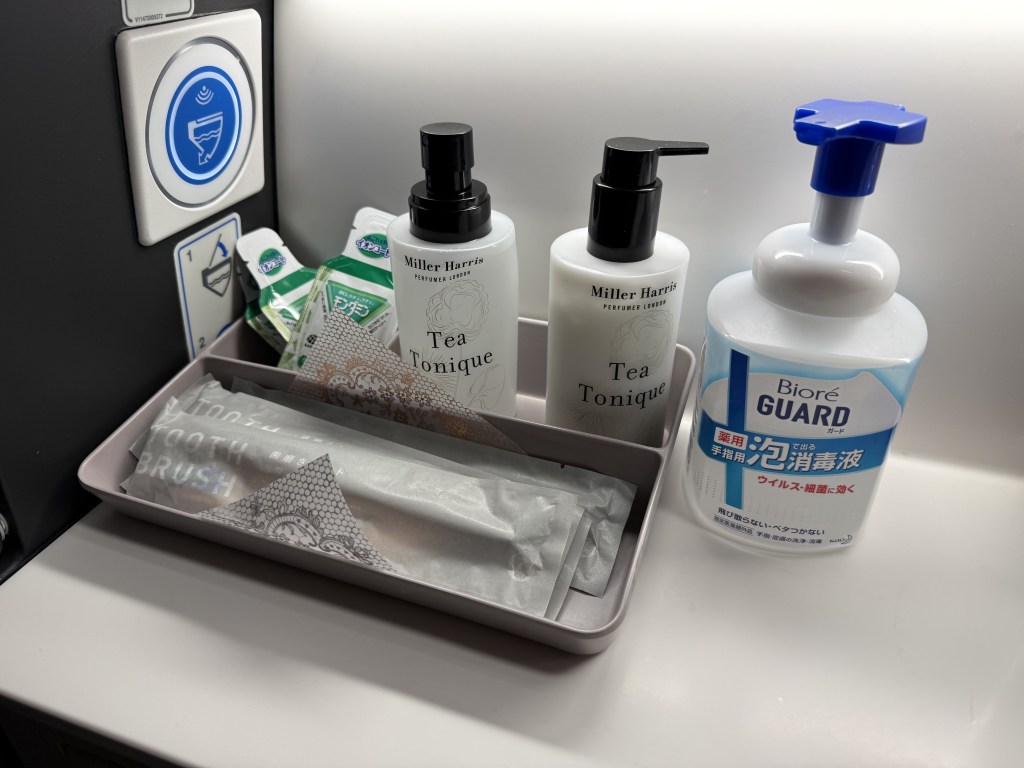 Two other things I quite like was that JAL provided little cups, as well as a bidet function. A smany of you may know, Japanese toilets are quite advanced, and so JAL offers those same functions. While I did not use it, I liked this little piece of Japanese customs, something I’ve never seen before on a plane!