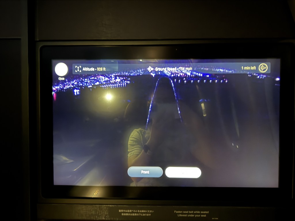 At this point we were delayed in our departure by over an hour, and I felt as though the crew was well-aware and was trying to rush through the welcome so that the delay wouldn’t be exacerbated. A little later we were well on our way to the runway, and soon we turned onto the runway for takeoff.