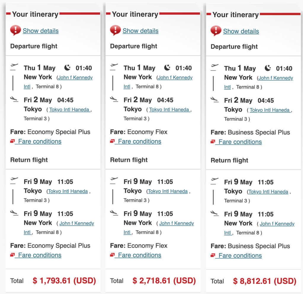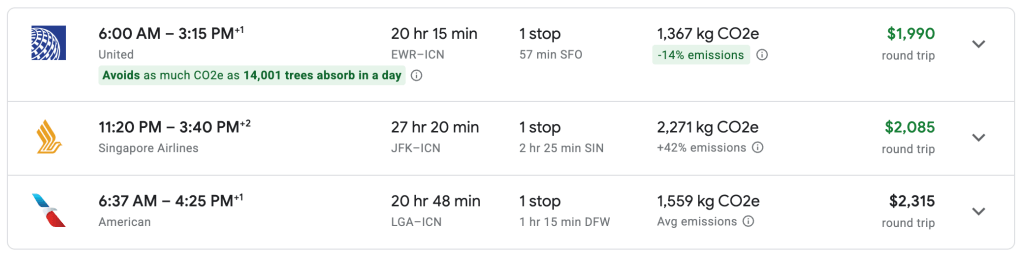 And if you want to fly to Seoul, actually now United is the cheaper option (and also at a journey duration that is 7 hours shorter, mind you):