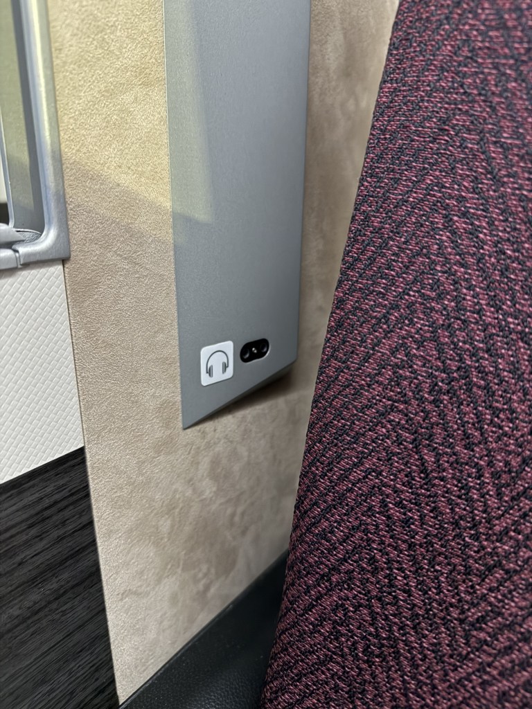 The headphone jack was to my immediate right, a little below my shoulder, and above my shoulder was. reading light. This light is in addition to a bigger light on the overhead panel. There are no individual air nozzles.