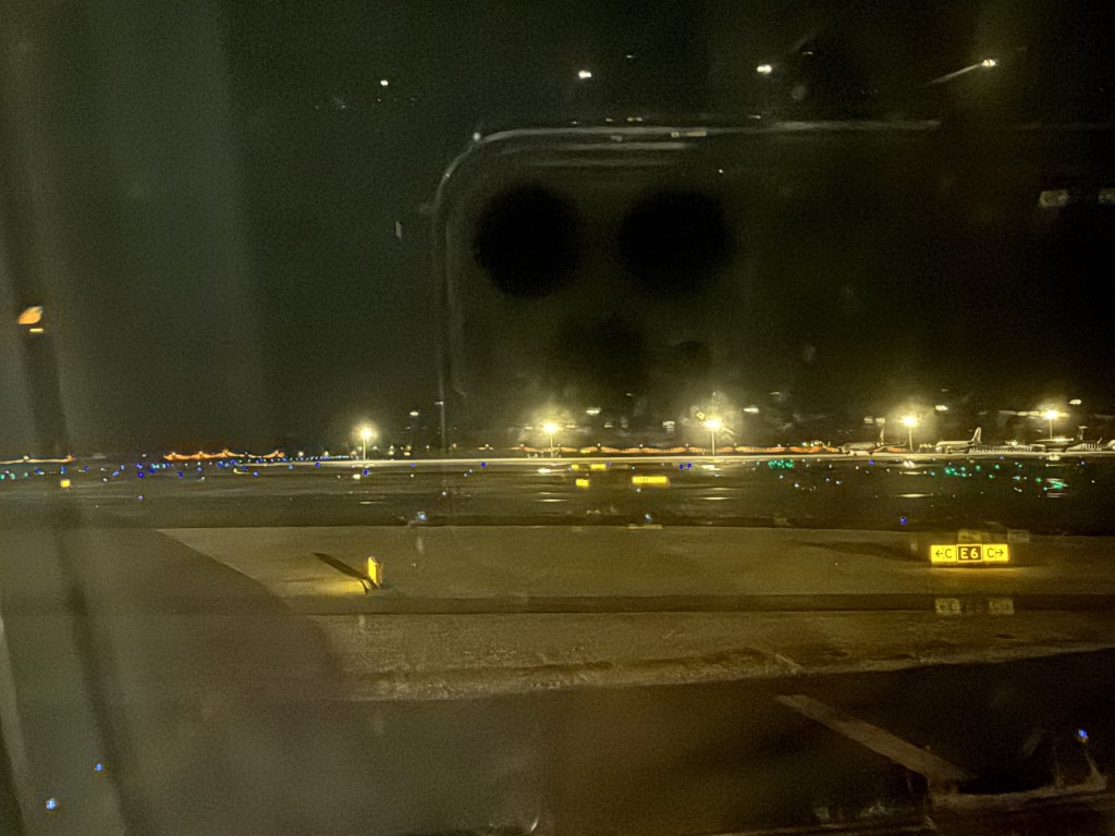 Killing some time until departure, finally the jetway was retracted and we started on our way. Soon enough we were taxiing to the runway, in the dark.