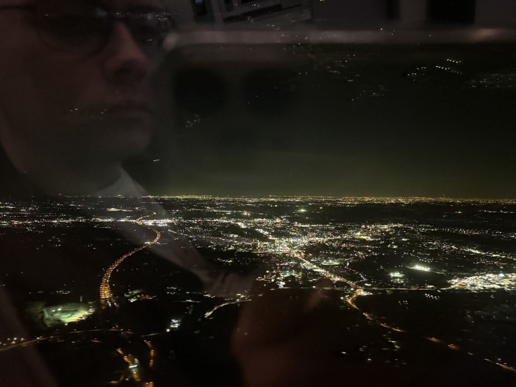 Finally we reached the runway and swiftly left the ground. Looking out one of the three windows I had along my seat, I saw Japan roll away from under us, and we sped into the night sky.