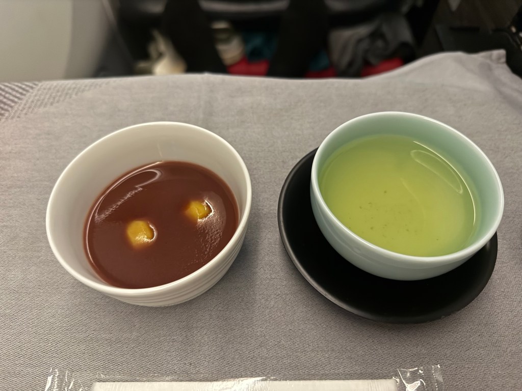 I’m happy to report that the service was indeed better, on the whole, on the 787, but also note that the business class cabin was half empty. I felt that the service was not friendlier or anything, but it was less rushed and more consistent: more polished. When the food was served, the flight attendant took her time to bring the tray, put it down calmly, ask if I needed anything else, and was on her way. I thought that was an improvement over my flight to Tokyo, where the attendant moved so fast it seemed like the food just kind of appeared out of thin air.