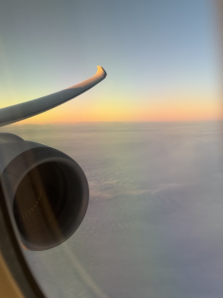 I liked that it was presented on proper dishware rather being in some kind of plastic cup of sorts. It was pleasant to have something refreshing after waking up. When I finished the dishes were cleared, and that was kind of the last I saw of the flight attendants until cabin prep started for landing. The sun had started to set at this point.