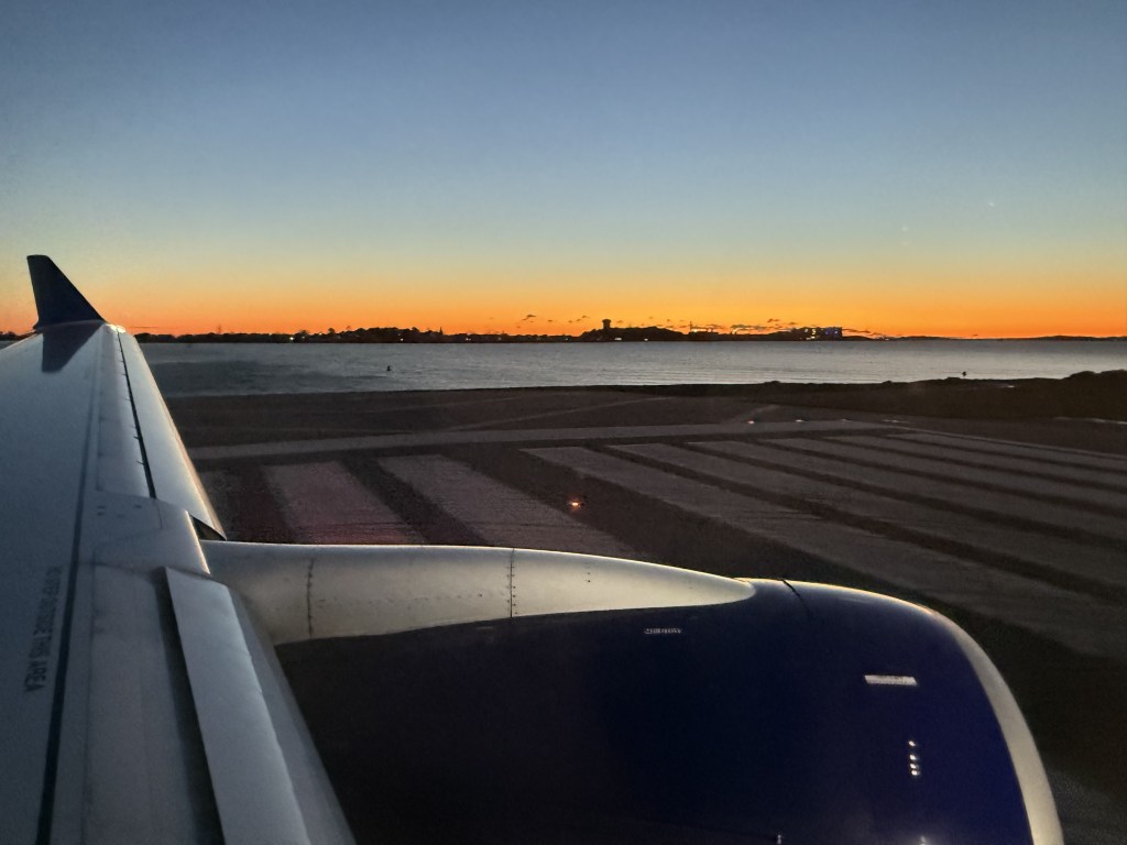 As we were closing in on Boston, the descent was announced and the flight attendants came by to take back the mattress and collect any trash or dishes that were still lingering around. The pilot gave his address to the cabin, announcing details on our arrival. Descent was smooth and before too long we found ourselves landing in a cold and dark Boston Logan Intl Airport: