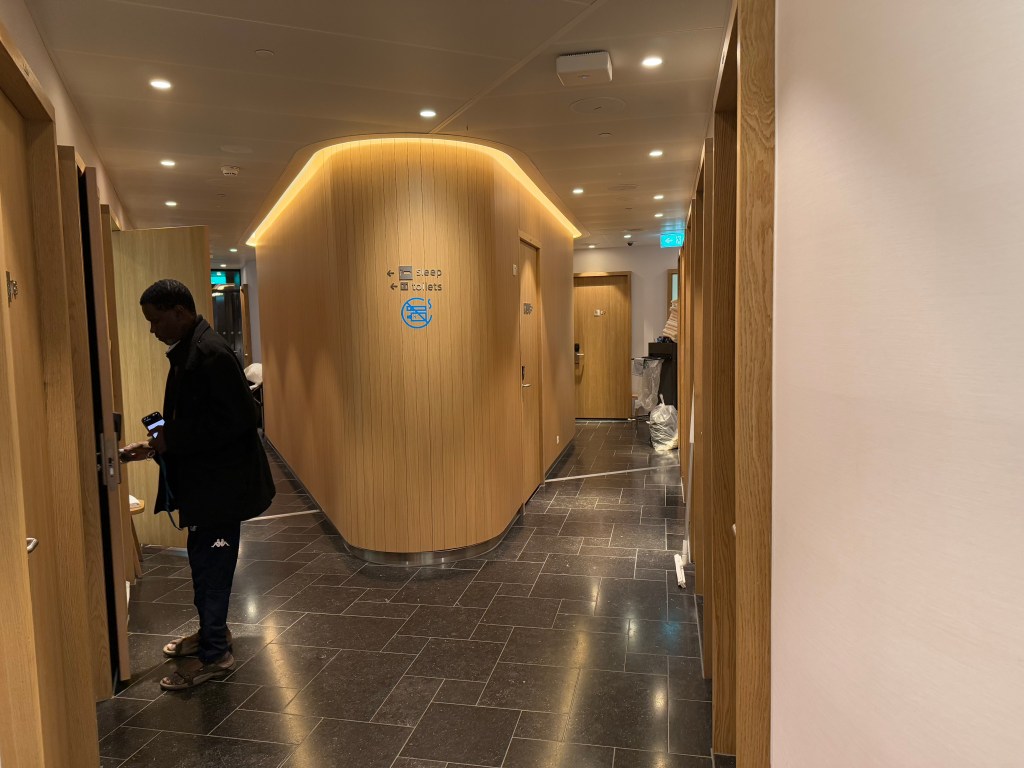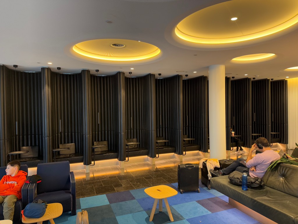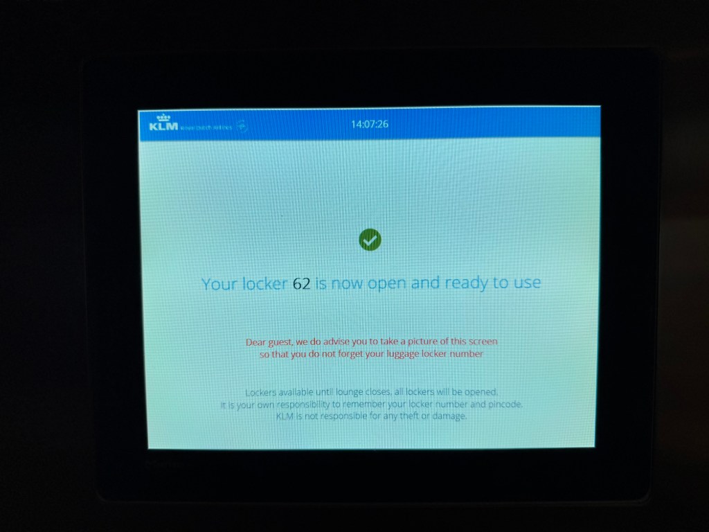 There’s also rooms that you can reserve to take a nap, behind a darkened door. I did ot enter this area or make pictures as I frankly was afraid to disturb anybody that may be there, but there’s more information on the website of KLM. Unfortunately it does seem that this is at a payment that, frankly, I think is rather steep, at 49.50 Euros for 3 hours and 75 Euros for 5 hours.