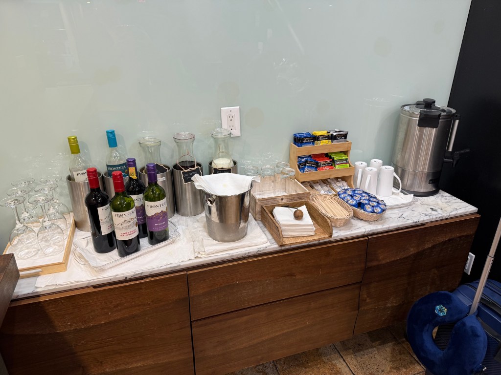 And then there was a station that had a variety of drinks, including te and coffee, wines and beers. The selection was decent enough, but not particularly extensive. For somebody wanting a short break before going through security, this would likely suffice, though.