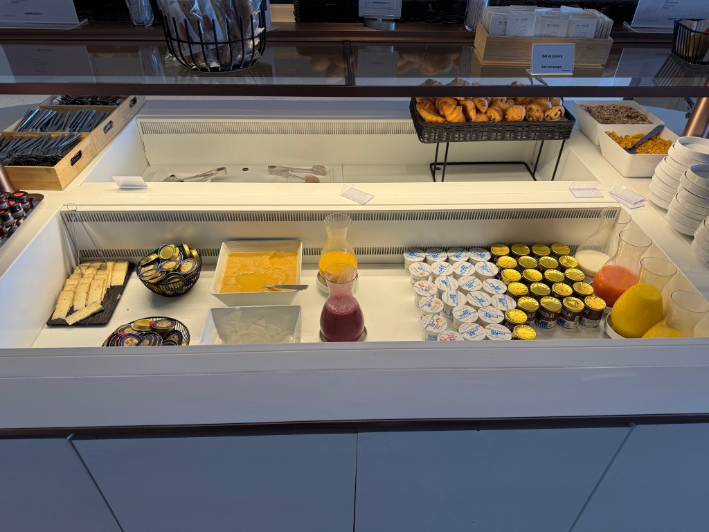 Below you can see some of the food selection available for breakfast, which included various juices, cold cuts, (chocolate) croissants, buns and yoghurts. I did get the feeling that some foods had already sarted being cleared when I got here, given that there were some empty spots.