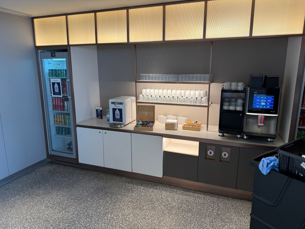 There were several drink stations, all with the same setup. All included a water dispenser, a hot drink machine for coffees and tea, and a fridge with various sodas, or beers. As you can see, not every station was quite as well-stocked as others.