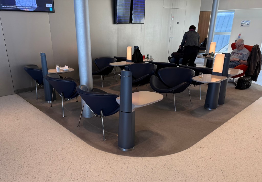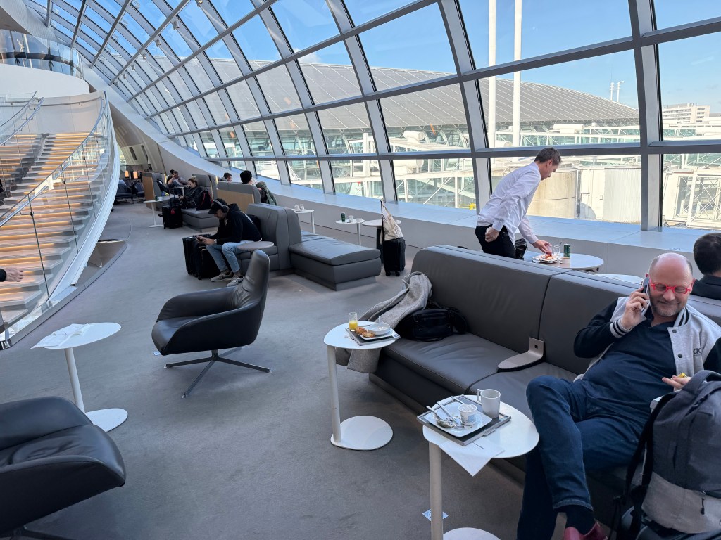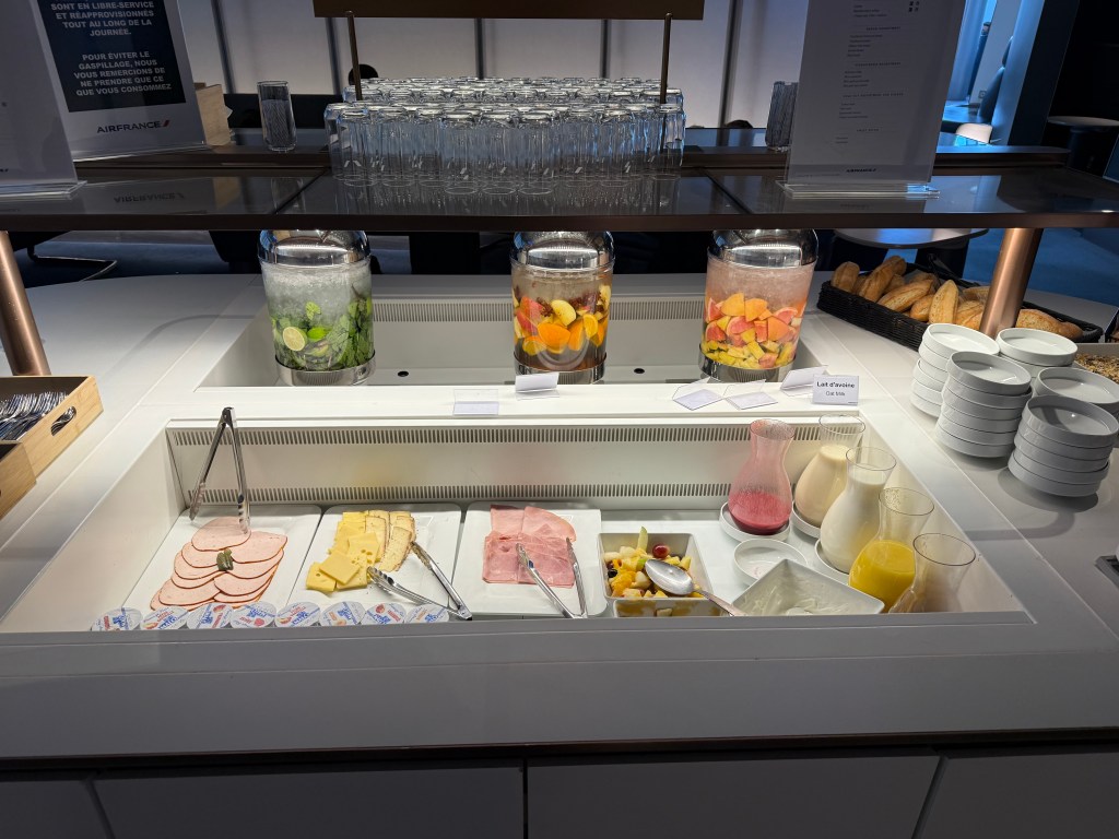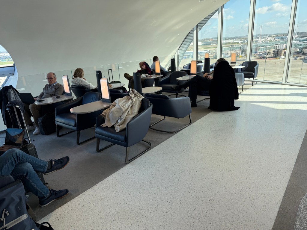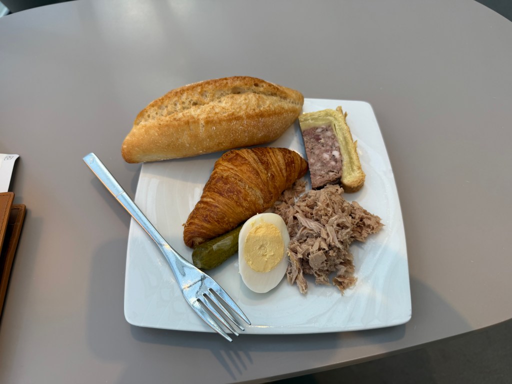 Briefly, this lounge is great… My impression was that it can get crowded at peak times, but the design of this lounge is just beautiful, and of course this being France, the food was lovely as well. I arrived during breakfast and stayed until lunch was served, and saw the menu change from croissants and other pastries, to sandwiches, various spreads, quiche and a variety of other foods. And, champagne! I would gladly come back to this lounge!
