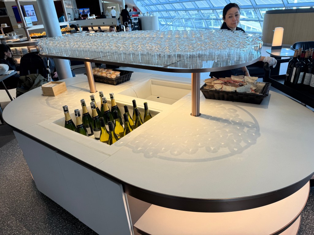 Around the lounge are multiple buffets, drink stations and bars of various kinds. I won’t provide photos of every single one, given that they all double up to some extent, so I will show you different pictures of the kinds of foods that were available. I’ll also add that when I got to the lounge, breakfast was being servedm, while around the time I left, breakfast was being replaced with lunch. At that point the champagne was also brought out, and attendants even walked around proactively offering champagne to guests. How nice is that??