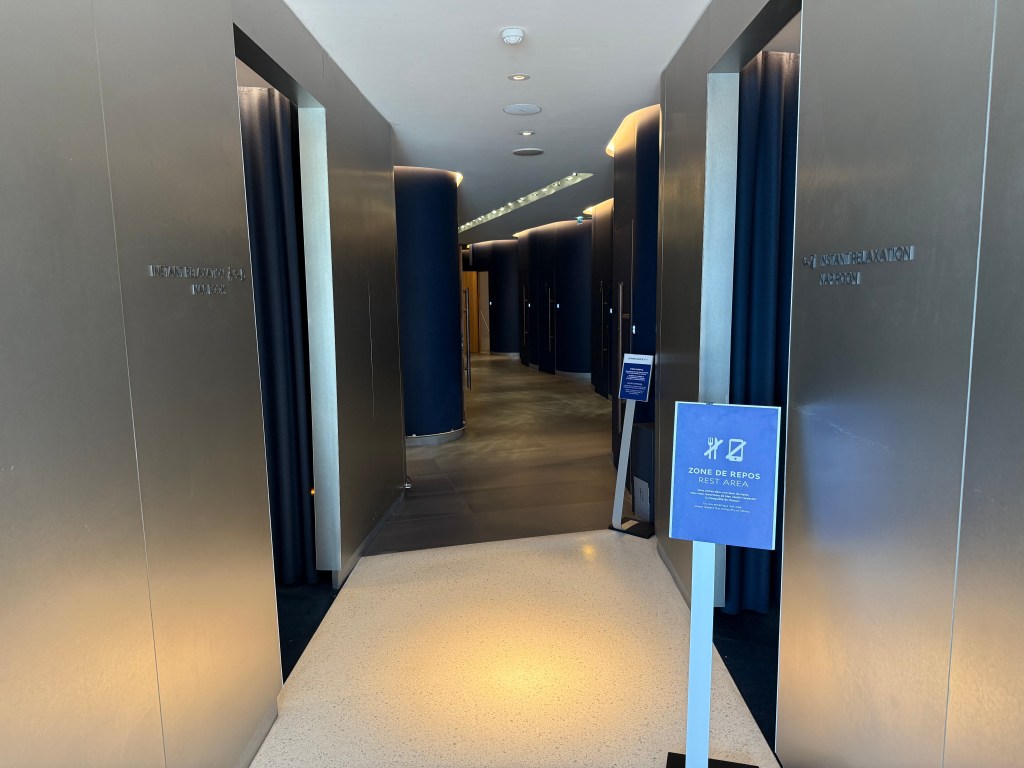 Turning left at the spa, you walk through a hallway with ‘instant relaxation’ and nap rooms on the left and right.