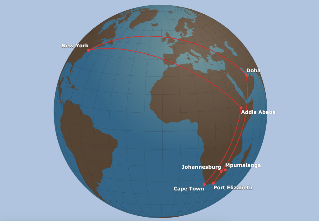 - We will fly Qatar Airways (QSuite business class) from New York-JFK via Doha DOH to Johannesburg JNB, where we will rent a car.