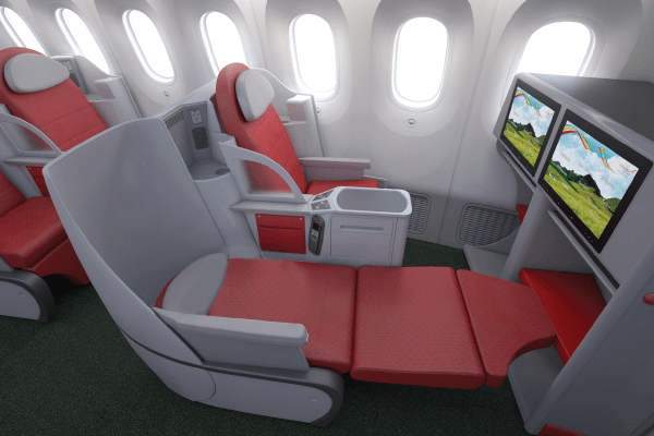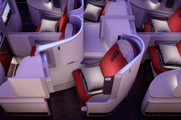 If you’re lucky and get to fly on the A350, which is Ethiopian’s newest plane, you have a distinct chance of flying on one of their jets in 1-2-1 configuration, featuring a product quite similar to that of United’s Polaris business class seat, see below.