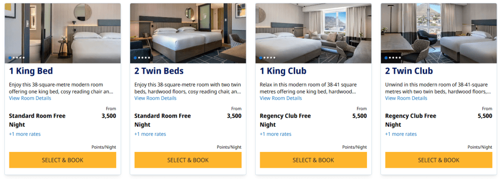 You will then be presented with options for rooms, as displayed in the previous section of this post. You’ll see that throughout May the rate is 3500 points per night. Other months may be different, so be sure to check before transferring any points. For example, in April the rate was 5000 points per night.
