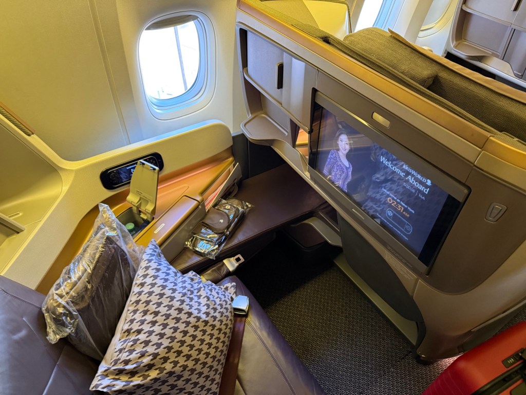 Singapore Airlines has different business class seats throughout it’s fleet, but the one I’m sharing here is present on the 777 and long0-haul A350 fleet. On the A380 and 787 fleet, you’ll find different seats.