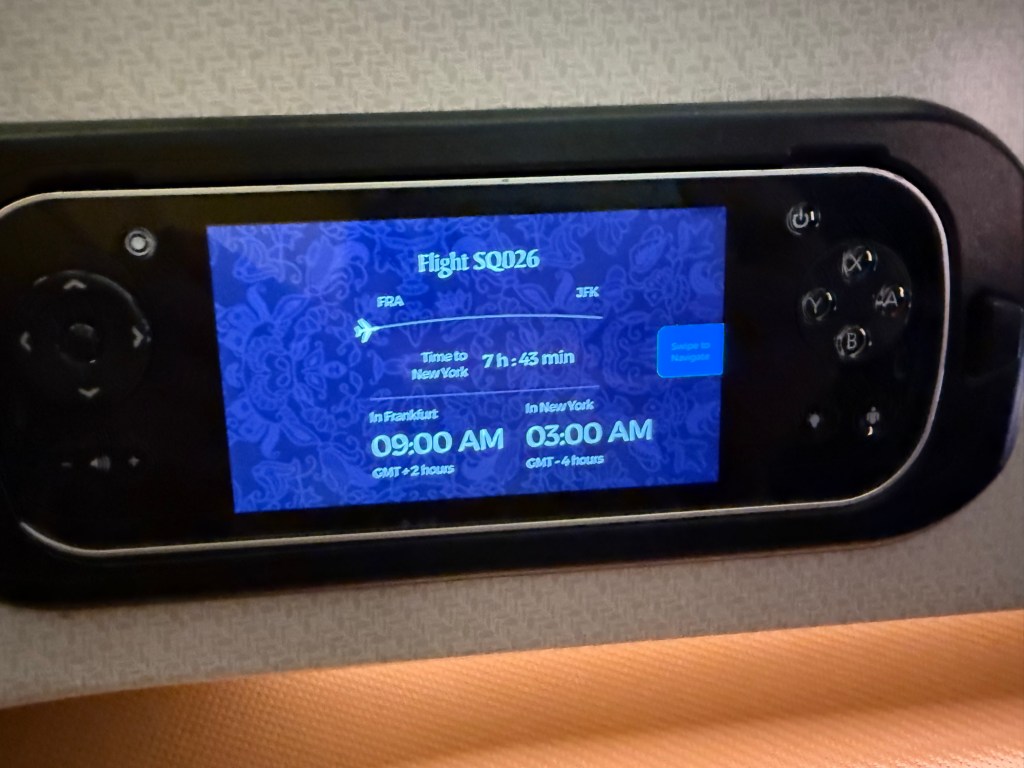 Specifically, I will be reviewing flight SQ26, departing Frankfurt FRA at 7:35AM and arriving at New York-JFK at 10:10AM.
