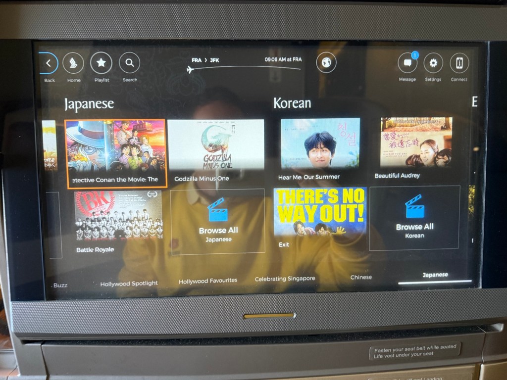 Overall, the Singapore Airlines entertainment system has a lot to offer in terms of entertainment options, but I thought it was a major step into the past that the main monitor was not a touchscreen, Because the controller’s touchscreen was not super responsive, operating the system could definitely have been smoother than it was. Even so, it worked fine overall. But, I would say that this system needs a hardware update…