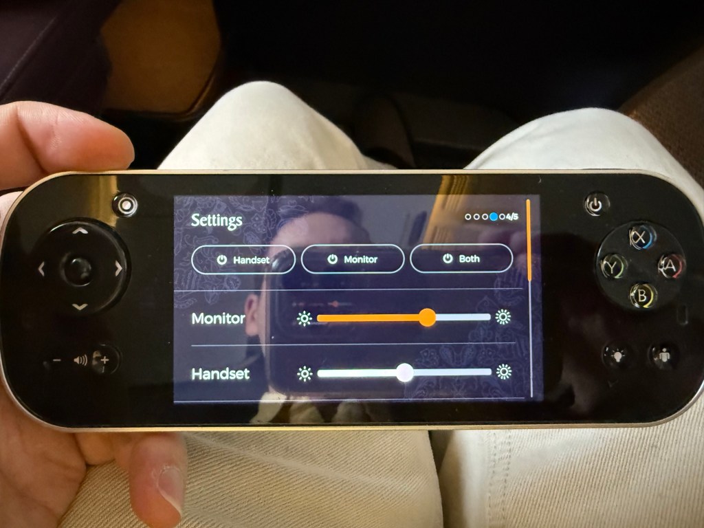 Now, the touchscreen is like on any other business class seat ona ny other airline, for the most part. The center screen is a touchscreen, so you can use that to directly interact with the user interface, but you can also use the buttons to the left and right of the screen. I found the controller’s touchscreen to be a little finicky though, and not super responsive. That sometimes made controlling the enetrtainment system to be a bit of a chore.