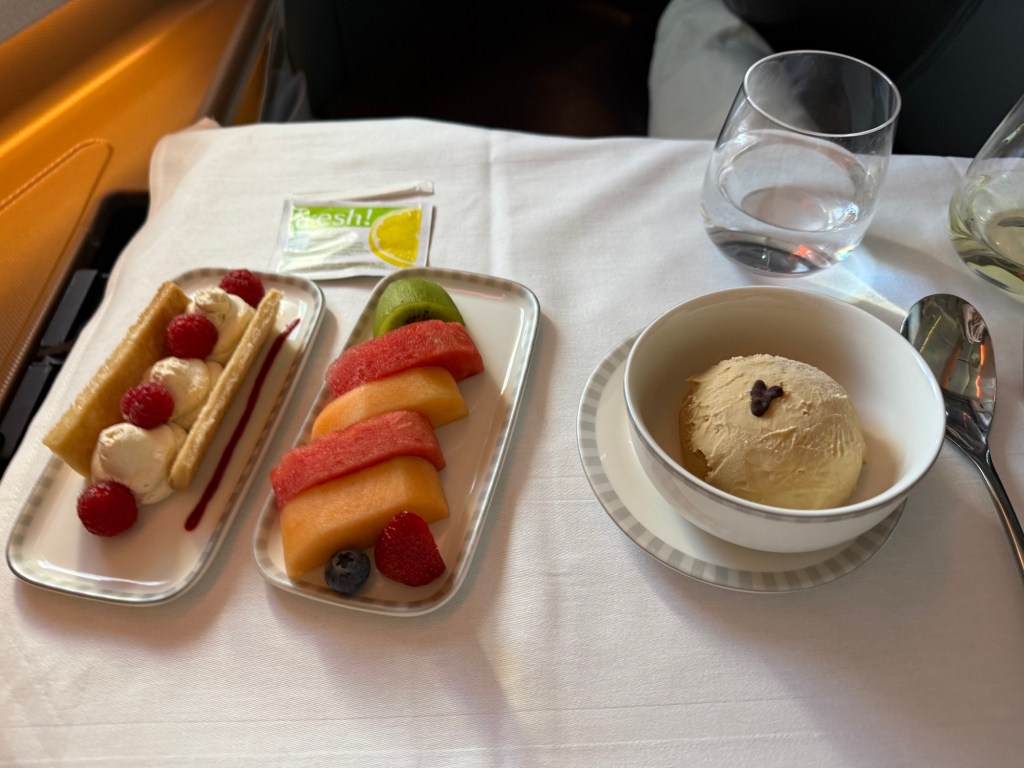 With that, the main meal service onboard this flight had concluded. The food was great – that was not a surprise, but of course still contributed to the lovely experience. What really stood out to me was that the crew’s ability to be both genuinely friendly, while still efficient. The service was personalized, prompt, helpful, and friendly. Truly a joy!