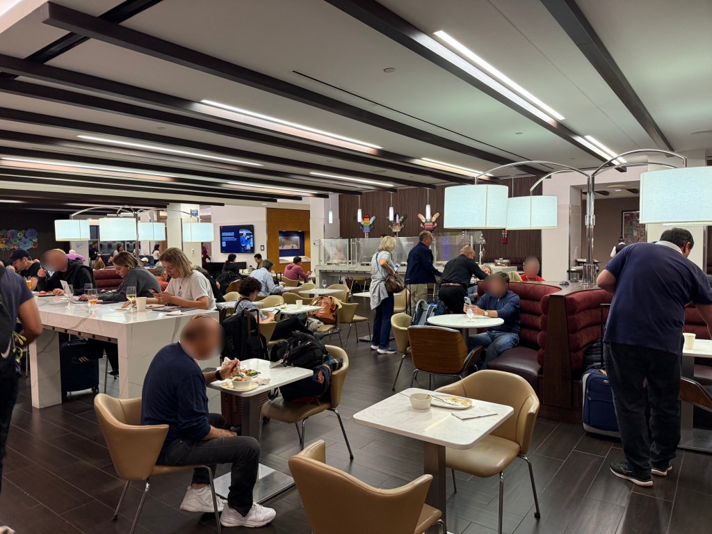As you can see, the space is really packed with people. Unfortunately, the entire lounge was very busy, but the dining space even more so. Granted, it was around dinnertime when I entered the lounge, and so obviously everybody had the same idea: have dinner. I do think it’s a nice setup overall, but I wish there was more capacity in this part of the lounge. Essentially every table was taken and people spilled into the surrounding rooms with plates of food (including myself) since few tables were available.