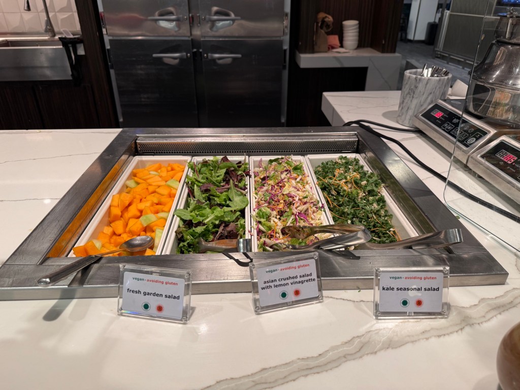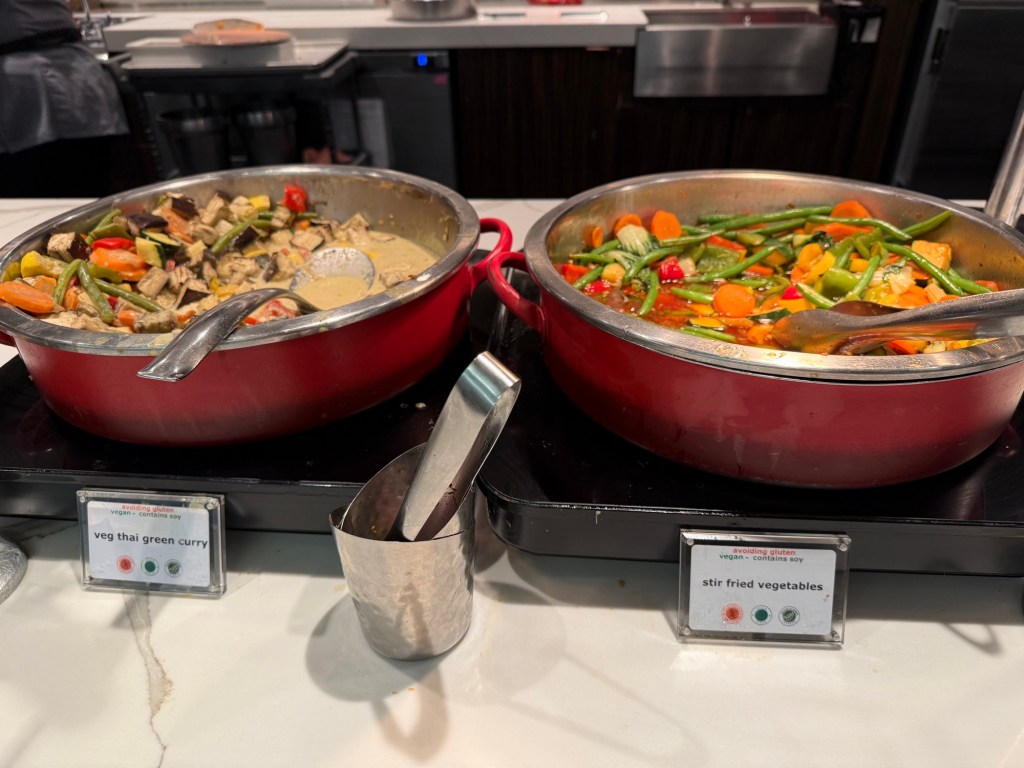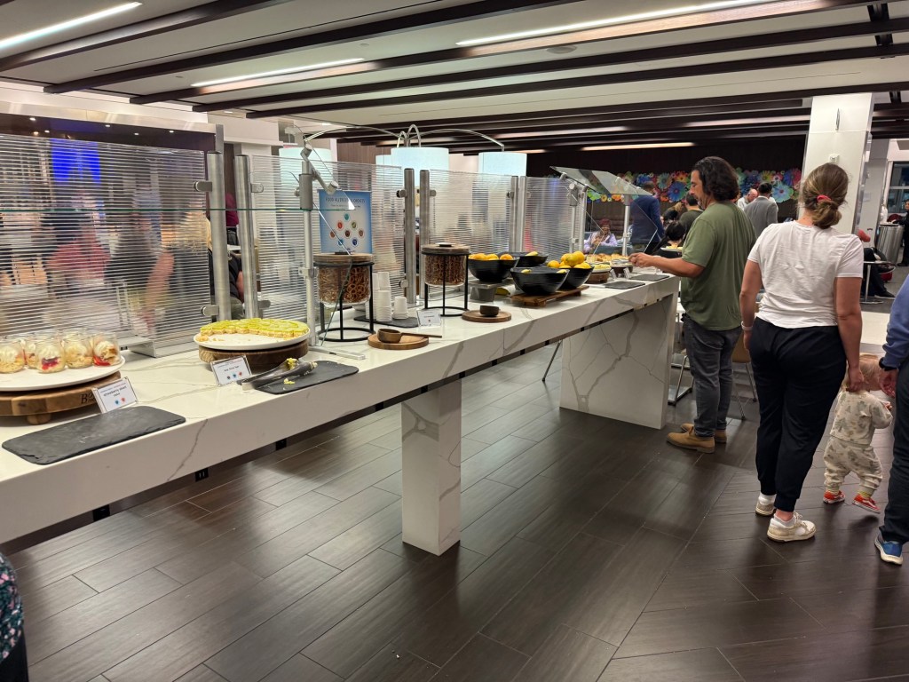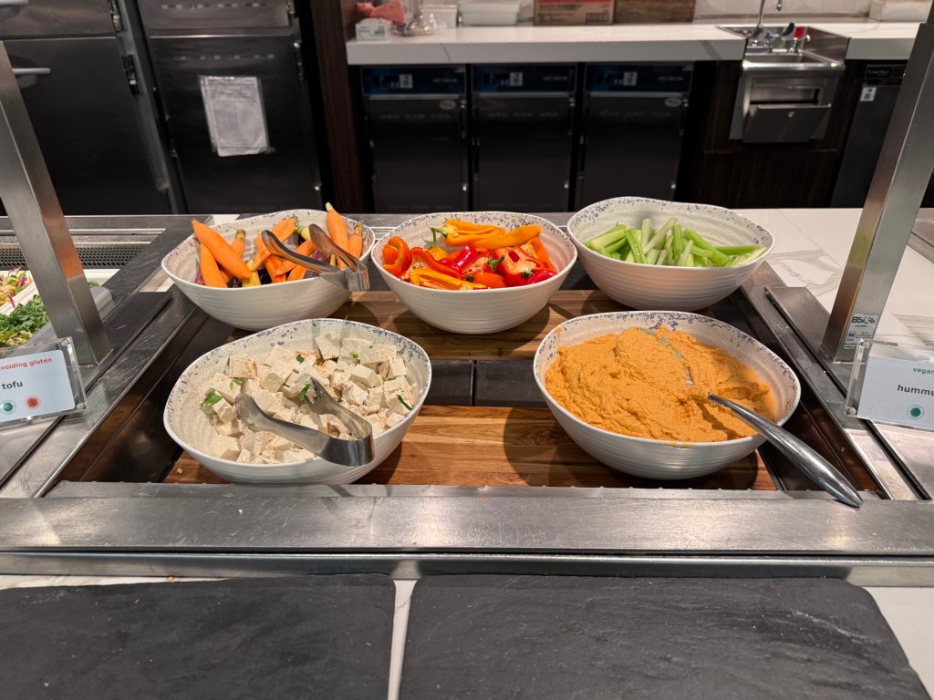 Then to the left of the bar is the buffet. There’s two lines, one coming from the left and the other from the right. On either side the food is identical, so this arrangement just allows for better flow. I’ll get into the food options in more detail later, but for now, suffice to say that I liked the design, resembling something of a kitchen that is refilled from the service side.
