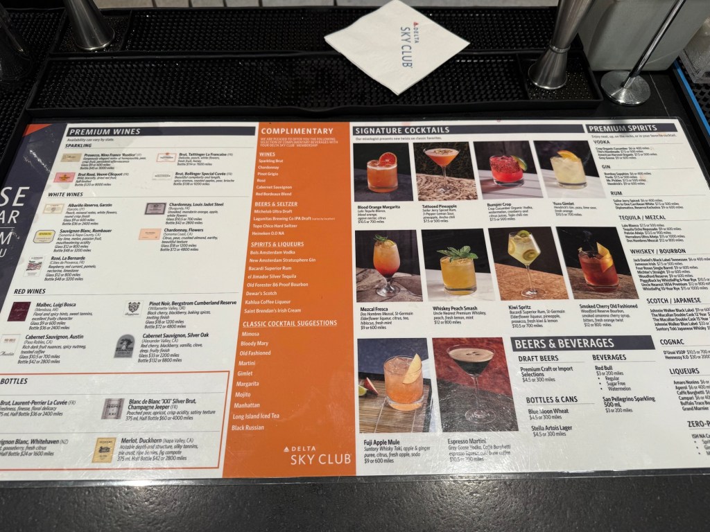 What I thought was not so nice was that a large selection of so-called ‘premium’ drinks at the bar weren’t complimentary. KLM does the same thing in its Crown Lounge 52, which I kind of expected (I say that being Dutch myself), but Delta being so big on the ‘premium branding’, I wouldn’t have necessarily expected ‘premium’ drinks to be paid.