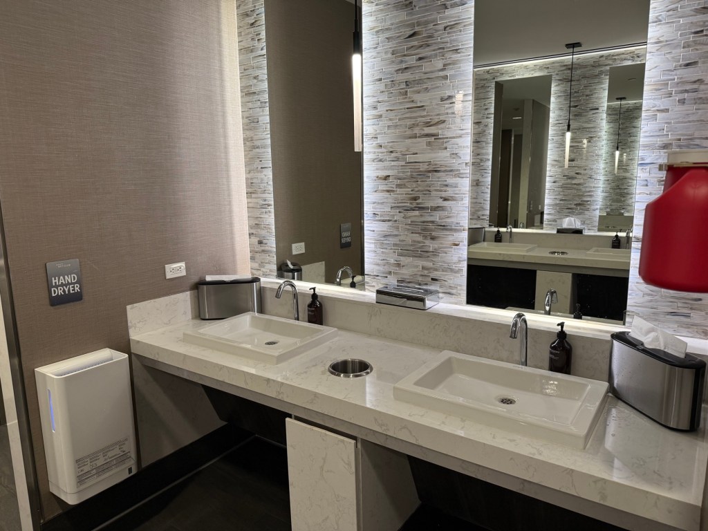 All in all, despite the sheer crowd in the Delta Sky Club, I enjoyed my time here. The design of the lounge is pleasant, with large, well-lit spaces that offer comfortable seating. The dining area is a little less nice, given how busy it seems to get, and felt a little bit enclosed. The food here, however, was very nice, and I enjoyed the large plate of food I had gathered for myself. I also thought the various facilities, the restrooms and showers, were nicely designed and kept clean and tidy.