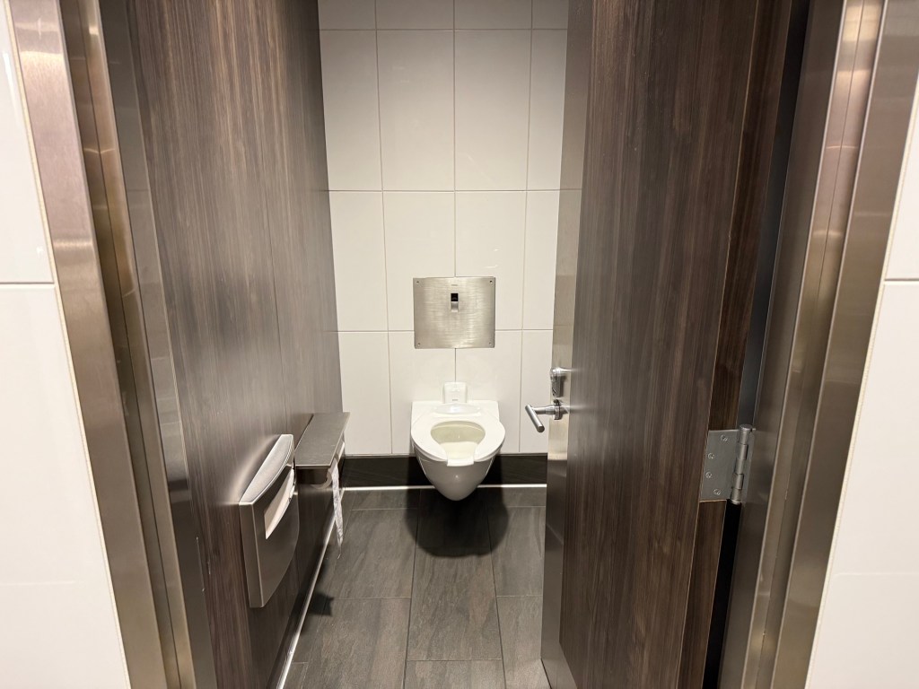 To then get to the restrooms, you’d have to exit this corridor and go into the adjacent corridor. There are separate mens and women’s restrooms, and while I can’t speak for the women’s restrooms, I was quite impressed by the sheer size of it. You come in to find essentially two ‘rooms’ connected by a corridor, each of which with a slightly different layout. Along the corridor you’ll mostly find separate stalls, which, rather than ‘stalls’ are actual ‘rooms’. I think this is great: I actually quite dislike the prototypal toilet stall that is common in the US, as such ‘rooms’ are simply much more private. Then there’s plenty of urinals, and severla sinks. The design was pretty. The whole space is well-lit, well-maintained, and clean.