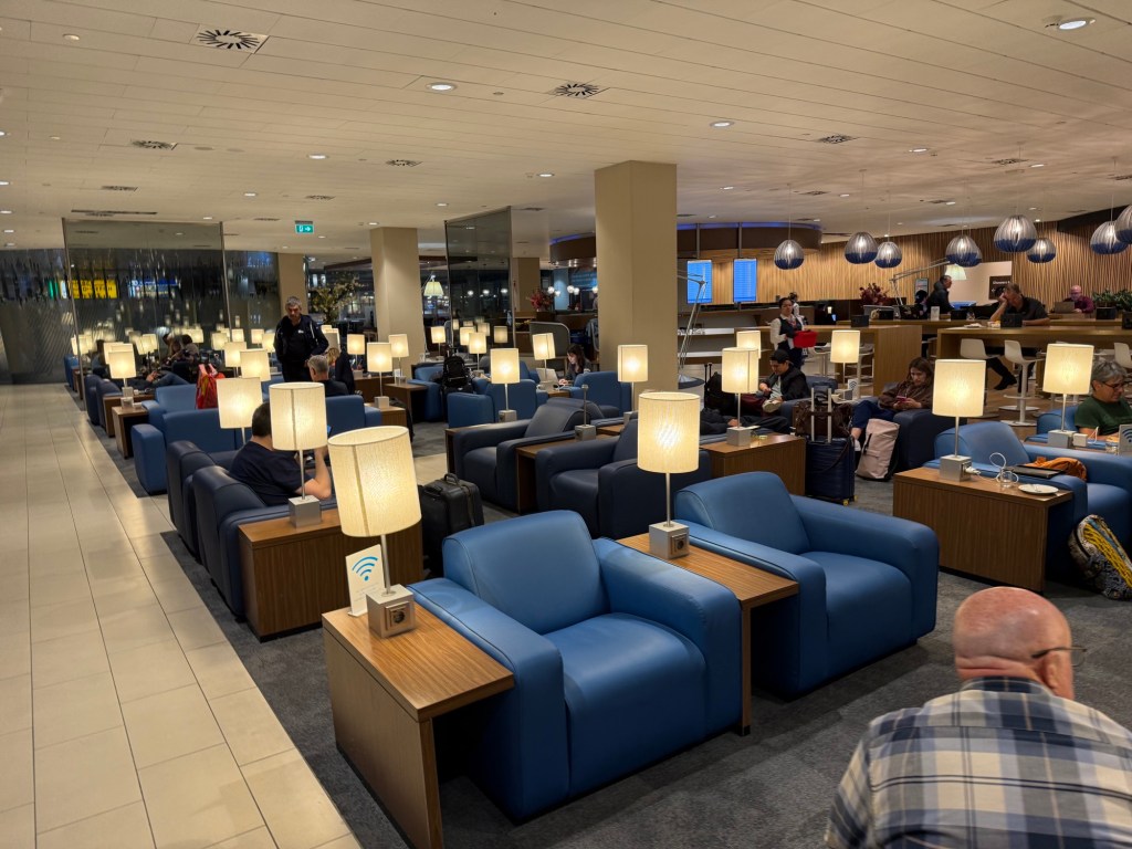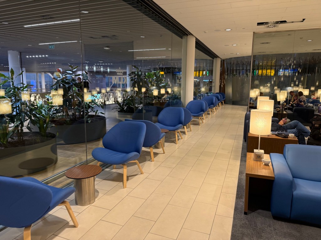 On this side of the lounge (meaning, to the right of the entrance), is also a large seating area. Similar to what I already described before, the main difference was that the colors of these lounge chairs was more of a shade of mahogany, rather than the KLM-blue. It’s no surprise that this part of the lounge was also quite full, as these chairs were indeed very comfortable.