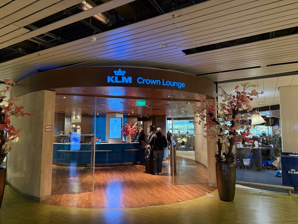 I booked a basic economy ticket flying from New York-JFK to Amsterdam AMS with KLM, and then on the return flying first from Amsterdam AMS via Paris CDG to New York-JFK, with Air France. Obviously these are all SkyTeam airlines, and so my Flying Blue Gold status granted me the aforementioned perks. I was able to visit the Delta Sky Club at New York-JFK Terminal 4, then the KLM Crown lounge No. 25 at Amsterdam Schiphol Airport (AMS), and finally the Air France Lounge at Paris CDG Terminal 2E, Hall M. In this review I will cover the second of those: the KLM Crown lounge No. 25 at Amsterdam Schiphol Airport (AMS).