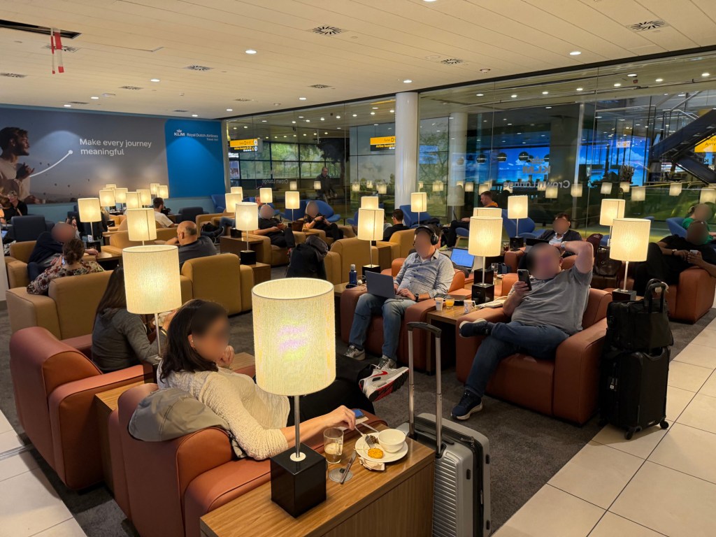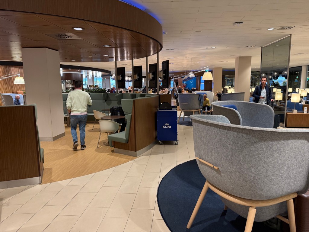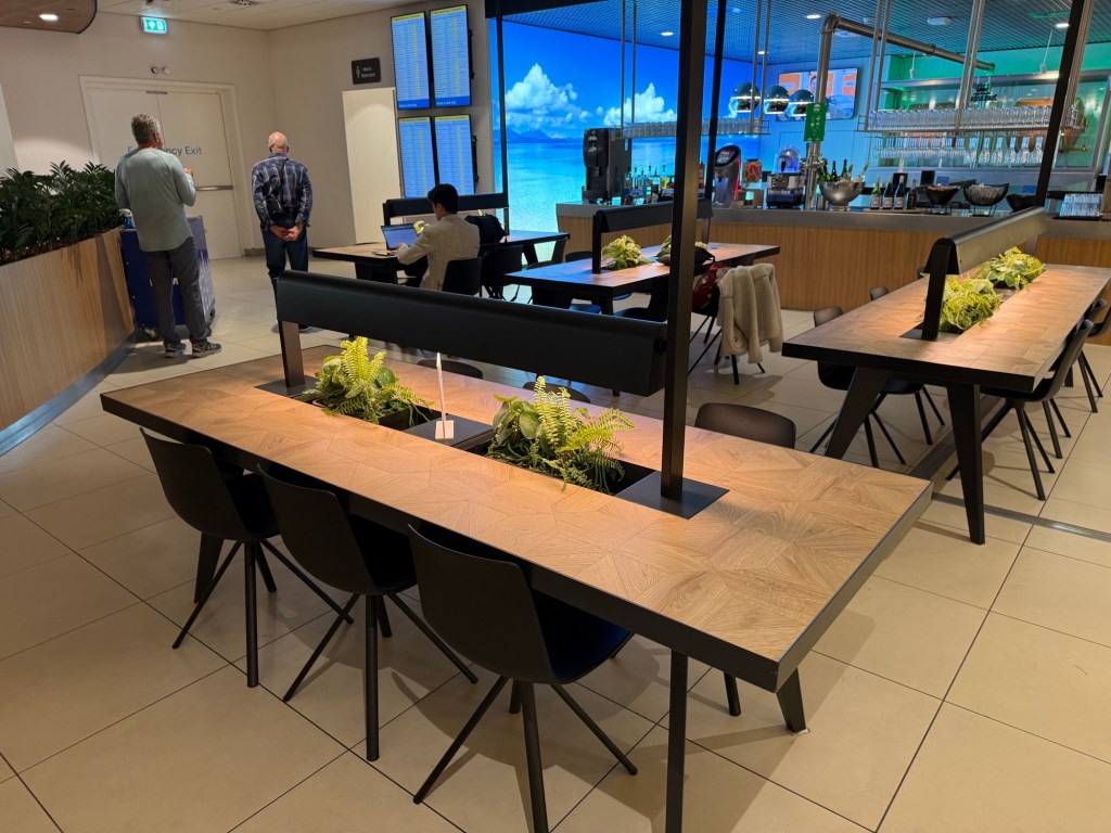 There was one thing however that I didn’t particularly like: the lounge was already rather busy when I entered it around 7AM, but by the time I left it was really quite packed. I believe pretty much every free chair was taken, even the ones at those high-top tables that seemed a little cramped. This was around 9AM and KLM’s morning bank of flights peaks between 10-11AM. I can imagine that after 11AM the lounge would gradually become emptier but given how busy it was at 7AM, I wouldn’t expect the lounge to ever be quiet, unless it right at opening or close to closing time.