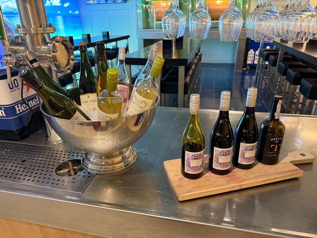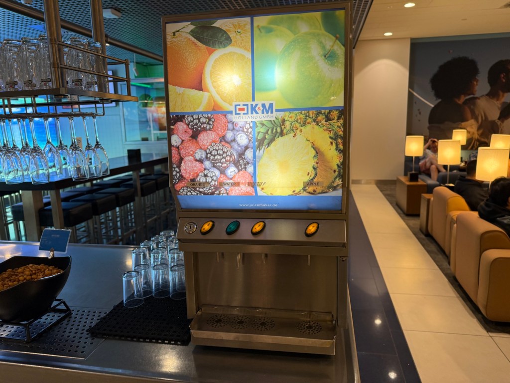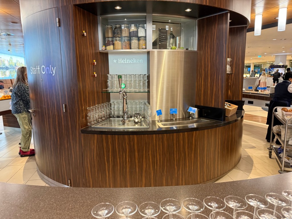 This bar probably had the most comprehensive selection of drinks in the lounge, save for hot options. First up were a large juice machine, various white and red wines, a tap for draught Heineken beer and grapefruit-infused water.