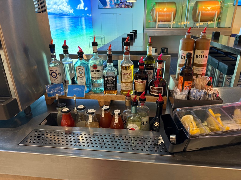 As I had mentioned, there’s two main food and drinks bars/buffets, and then there’ a small drink station near the Flying Blue ultimate private room, and something of a bar of alcoholic drinks as well. The smaller buffet is near the entrance to the lounge, and is predomianntly for drinks, smaller pastries and fruit. At least while I was there, I didn’t see hot options, but they were still setting it up.