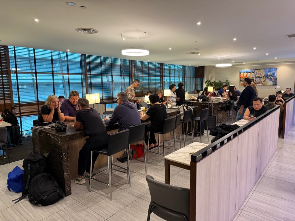 Like the other lounges we’d visited so far on this trip, this one was again quite small. Fortunately, it wasn’t too busy throughout the time that we were there. I don’t think it ever got more than 50% full, and a significant number of the guests seemed to be tourists. As you can see, there is a setaing space by the reception desk, and a bigger, square space just beyond that.