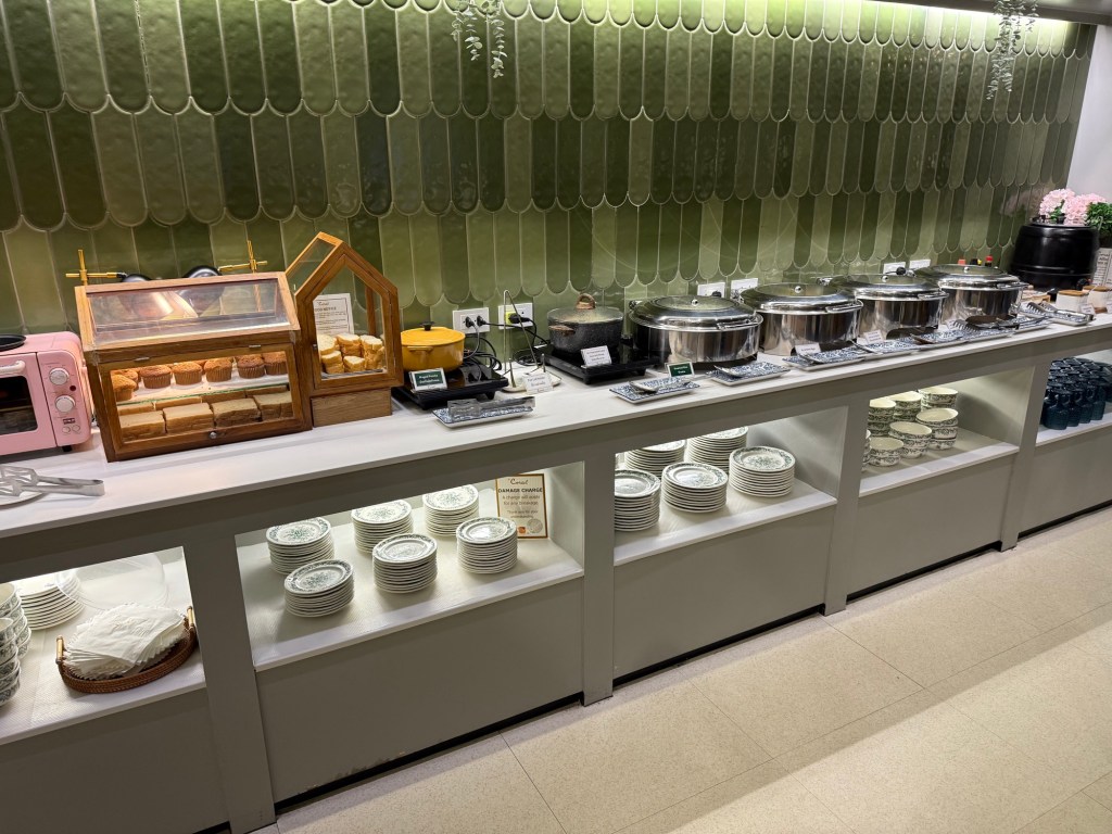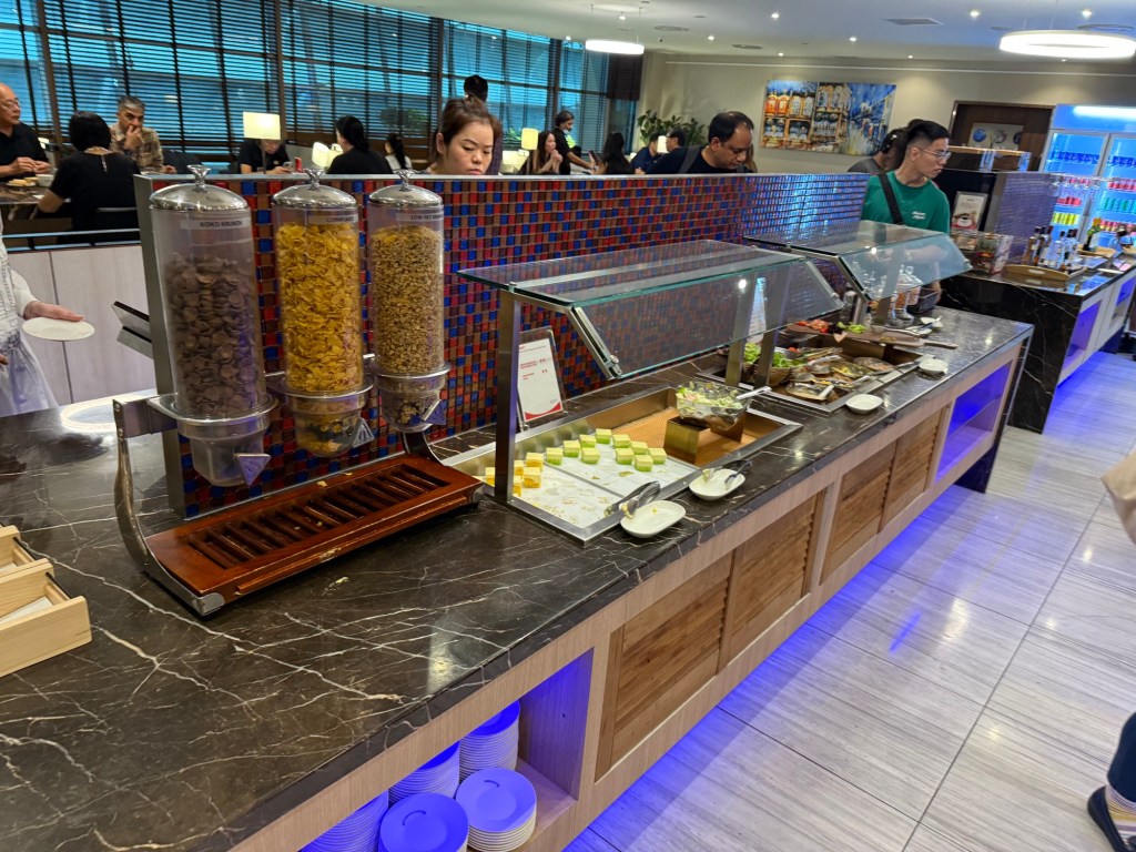 For our trip to Chiang Mai, we departed from the domestic part of Bangkok Suvarnabhumi, BKK. The airport doesn’t have a dedicated domestic terminal, rather it’s a different floor of the terminal: domestic departures are on the second floor, while international is all on the upper floors. We arrived around 5:30am for our flight at 7:25am, and decided to go the Corral Executive Lounge, as it had more and better reviews compared to the alternative: the Miracle Lounge.