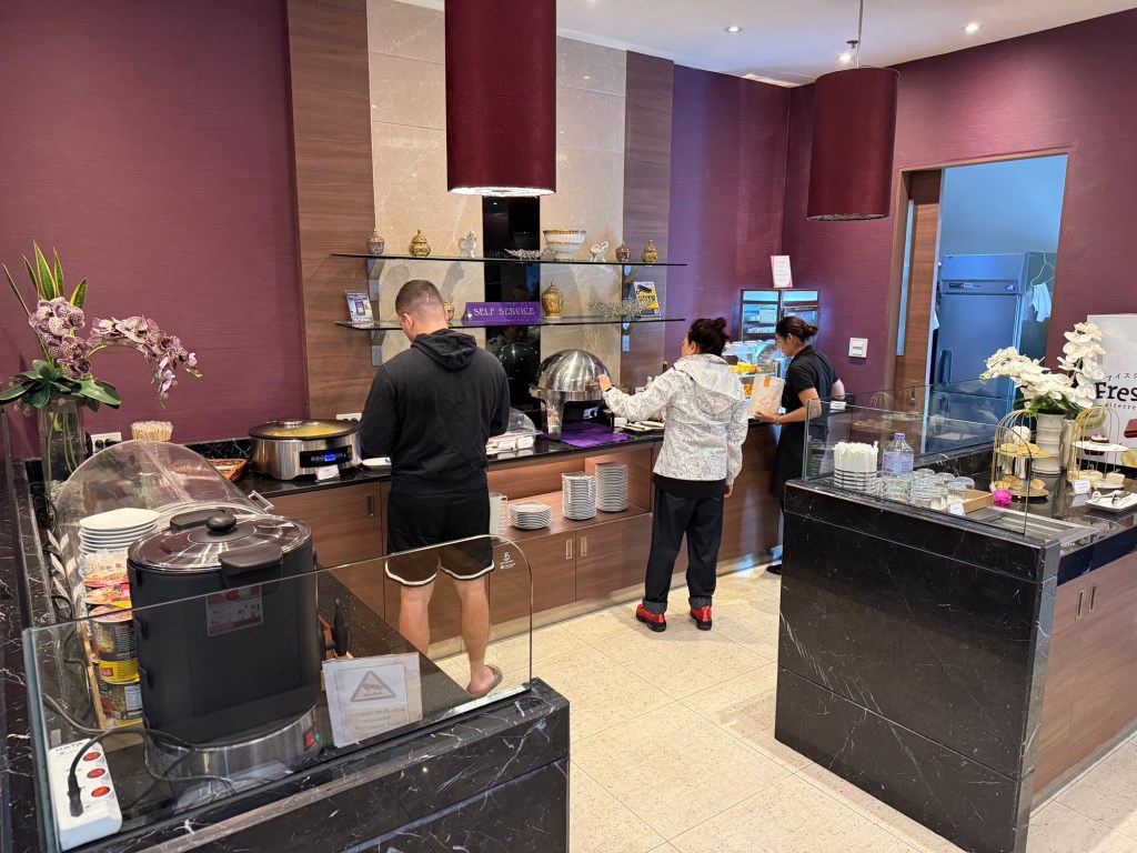 This was a bit iof a surprise to me. I hadn’t looked in advance what lounges accepted Priority Pass members to enter. Once we cleared security in the domestic terminal, we took a left and bumped into the Thai Airways Royal Orchid Lounge, and lo and behold it accepted Priority Pass members. I was interested to enter, because I was curious what the Thai flag carrier would offer its business class passengers, even though Chiang Mai only has a smaller airport and I imagine the Thai Airways lounge here is probably not the best in the network.