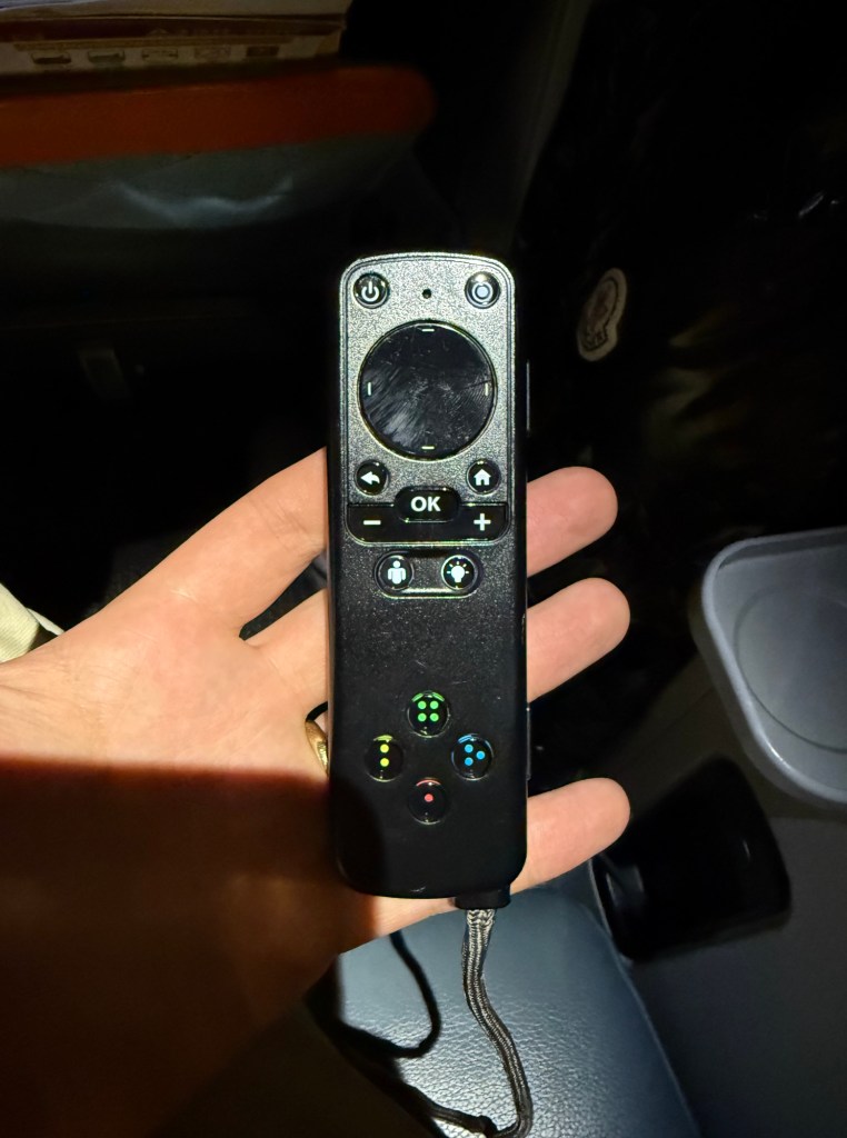 On the right side, there is a controller with buttons to control some basic entertainment system features, such as the volume, but also to turn on the overhead light and call the flight attendant. You can remove this from its slot so you can work with it more comfortably.