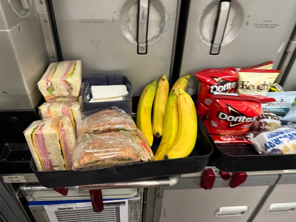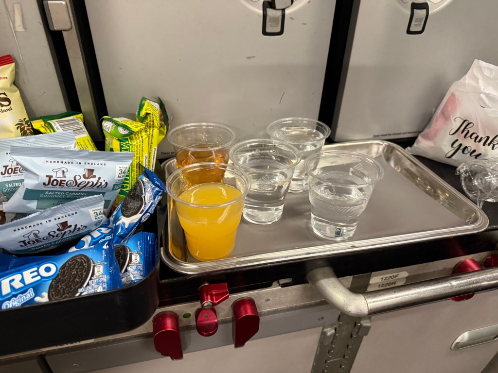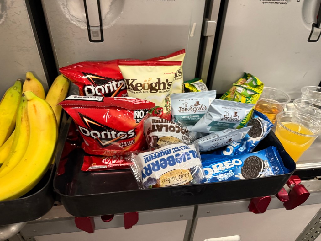 The rest of the flight was quite uneventful. As you may have seen in the menu, there is a ‘delectables’ menu, which is basically a snack buffet in the back galley of the cabin. Here you will find two trays of food and a tray of drinks. You can come here during most of the flight and grab some snacks or drinks, which I think is a great service.